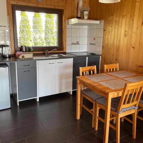 Na naszym terenie znajduje się 6 dwu-poziomowych domów letniskowych dla 7/8 osób każdy, w których zaletą jest przestrzeń i 2 osobne zamykane sypialnie.
